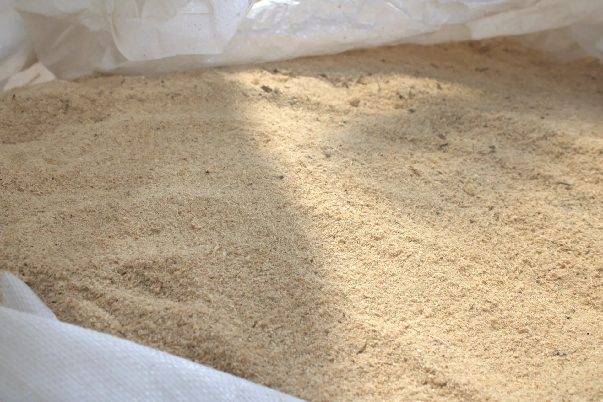 Beim Sägen fallen regelmäßig feine Sägespäne an, die ich in Big Bags abgebe. Diese eignen sich zum Beispiel als Einstreu.